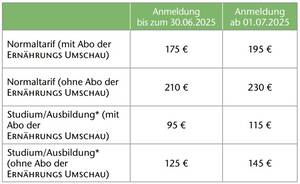 - Die Gütegemeinschaft Ernährungs-Kompetenz e.V. erkennt die Tagung der Ernährungs Umschau mit 6 Punkten als Fortbildungsnachweis für das RAL Gütezeichen Kompetenz richtig Essen an.